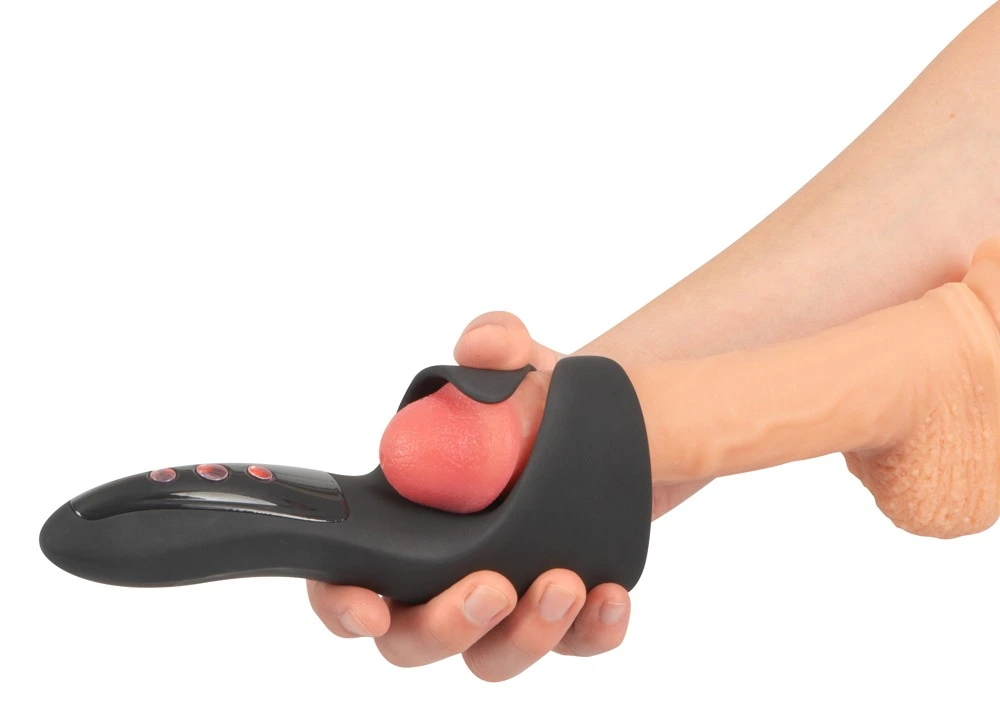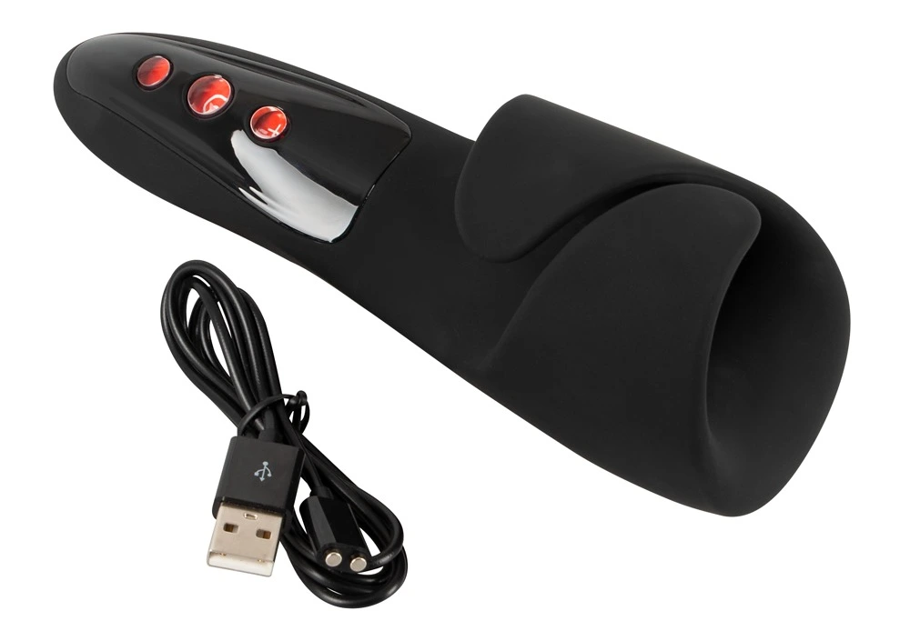 Compact masturbator with flexible wings that hold the penis securely. It provides amazing stimulation thanks to its 10 vibration modes in 3 speeds and a throbbing/pulsating knocking function directly on the sensitive frenulum (elastic band of tissue under the glans) for intense orgasm – even with erectile disfunction. The modes and speeds of the vibrations can be controlled separately with the buttons on the toy. The masturbator can also be enjoyed in the bath or the shower because it is waterproof. The high-quality silicone feels great against the skin during masturbation. It can be recharged with the included USB cable.