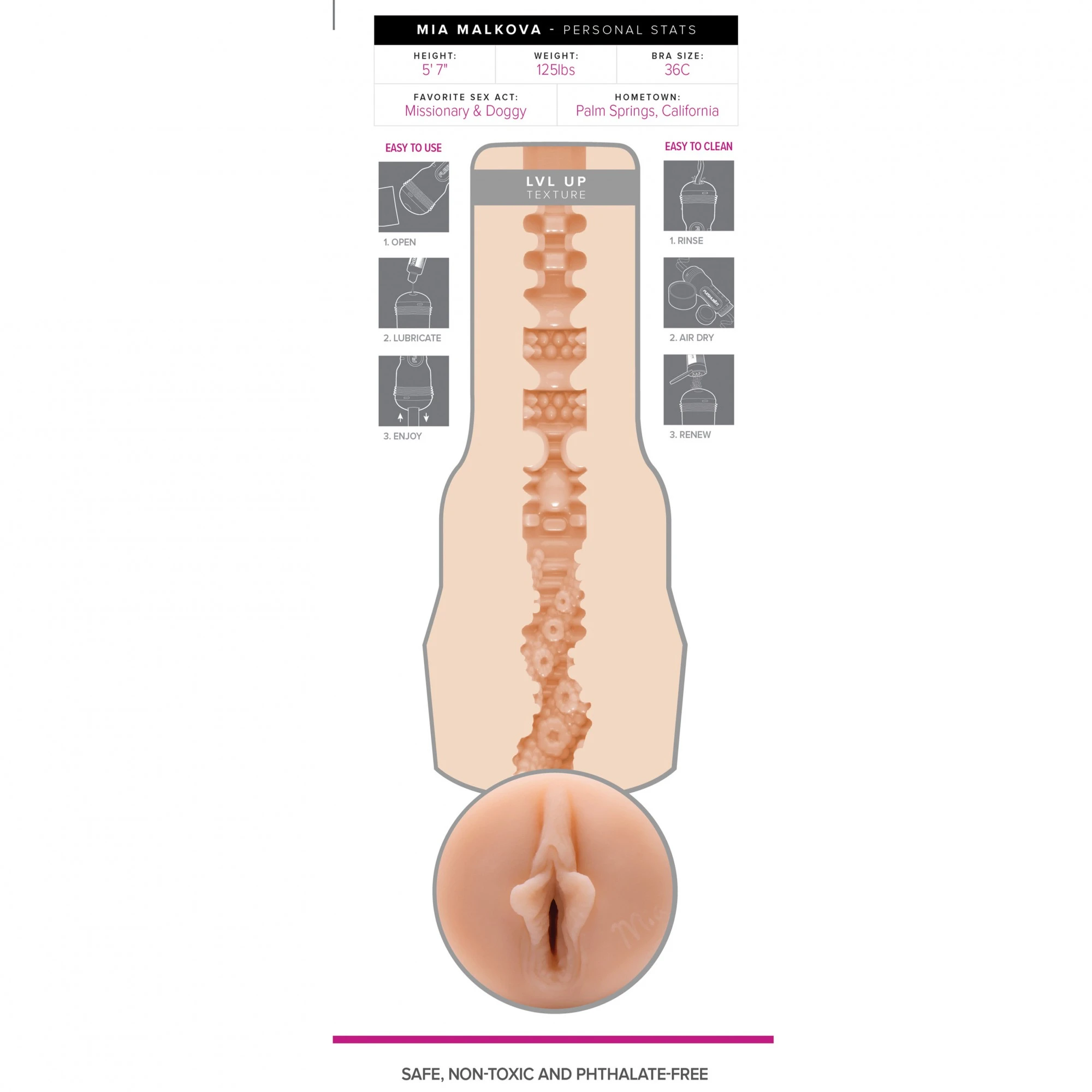 Mia Malkova’s Lvl Up opent met een gloednieuwe spiraal vorm, gevolgd door stimulerende knoppen met afwisselend strakke en superstrakke holtes. Je zult bij elke centimeter nieuwe sensaties ontdekken terwijl je dieper in Mia duikt.