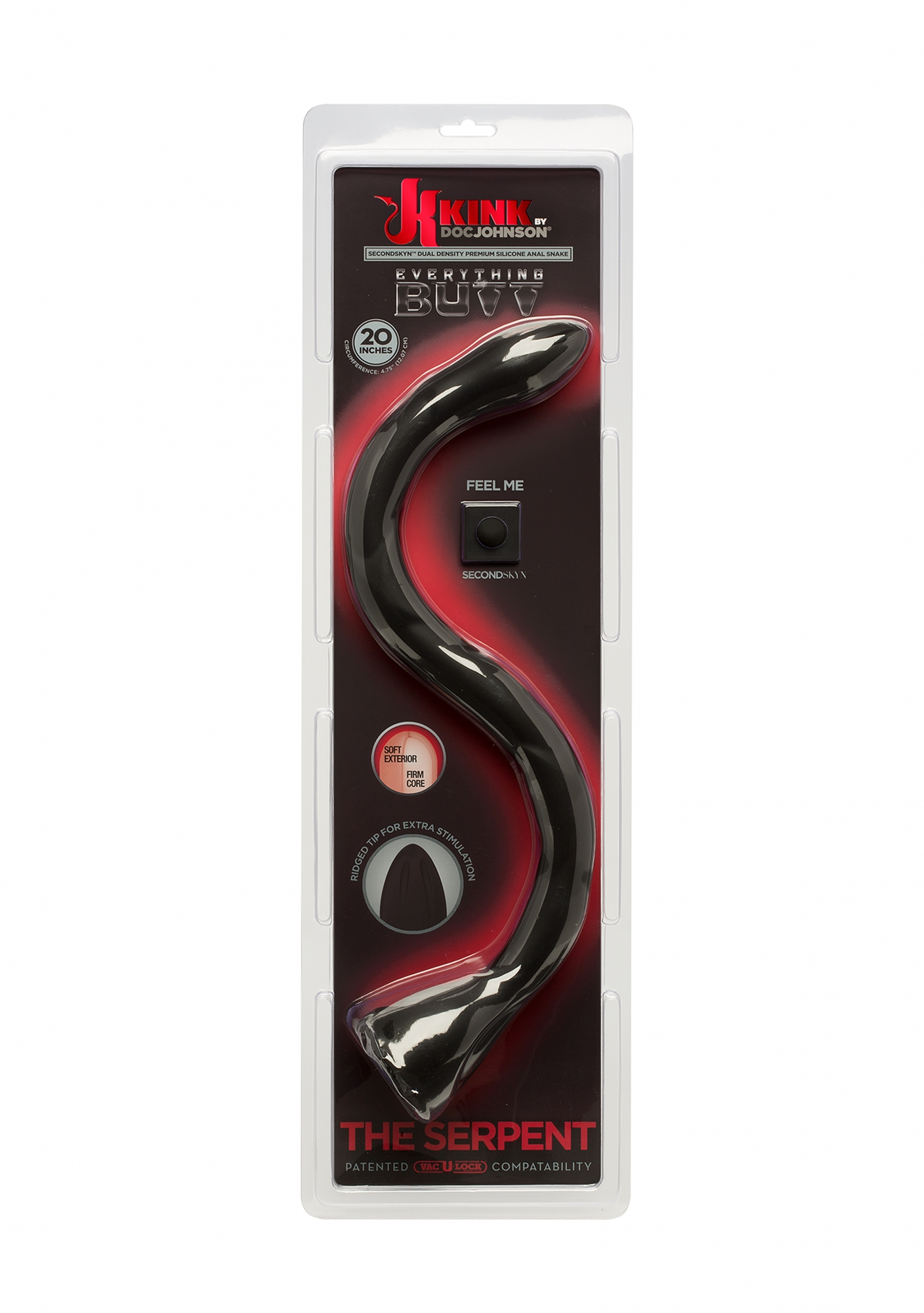 De Serpent uit de KINK by Doc Johnson-collectie is gemaakt om te plezieren in SecondSkyn-siliconen met dubbele dichtheid, een verleidelijk zachte, flexibele siliconen die meegeeft bij iedere aanraking en zich vormt om zo aan al je behoeften te voldoen. De smalle breedte is perfect voor teasen of een snelle duw, terwijl de verlengde lengte en dikke bolvormige punt ideaal zijn voor het het bepalen van je grenzen en een diepe verkenning voor degenen die onze In Deep Anal Snake hebben overwonnen.