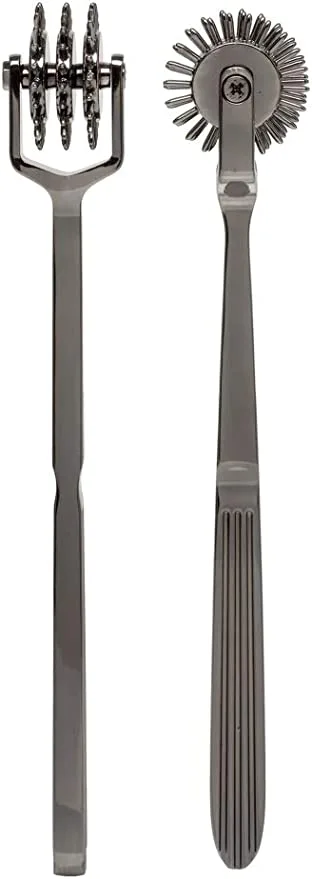 The Spike 3-Wheeled Pinwheel from Doc Johnson’s KINK collaboration ideal for teasing and tormenting a submissive with unique sensory delights, or as the prologue to a medical fetish play scene. Spike produces a variety of tantalizing sensations and effects depending on the pressure applied; lightly roll the wheel across the skin for a light tickling touch, or press harder to mark or pierce the skin with its sharp prickly points.