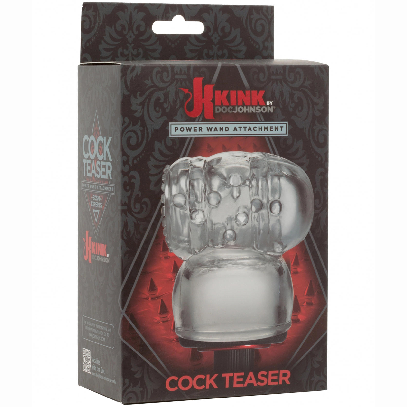 The best gets even better with the Cock Teaser Attachment for the KINK by Doc Johnson Power Wand. This tight, textured head stroker stretches to form a snug fit in clear material that leaves nothing to the imagination, and is designed to perfectly fit the Power Wand’s formidable vibrating head. The textured opening of the Cock Teaser gives way to extra large pleasure nubs and finishes with a suction-creating closed end.