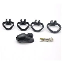 Alleen voor de allerkleinste piemels! Deze zwarte ABS kuisheidskooi sluit de penis op met geen kans van ontsnapping mogelijk. Gemakkelijk aan te doen door de ballen door een van de drie meegeleverde ringen te doen en daarna de kooi over de penis heen te schuiven. Sluit het geheel af met het handige cylinderslotje en het is gedaan met de vrijheid van de drager!