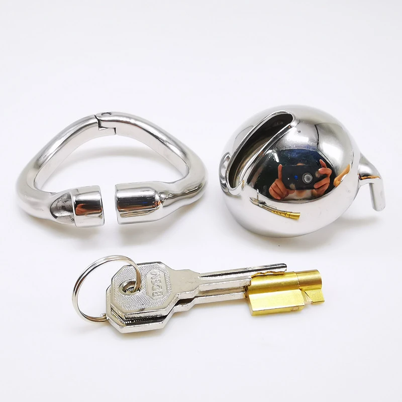 MAE-Toys Polished Stainless Steel Micro Chastity Cage With Cylinder Lock