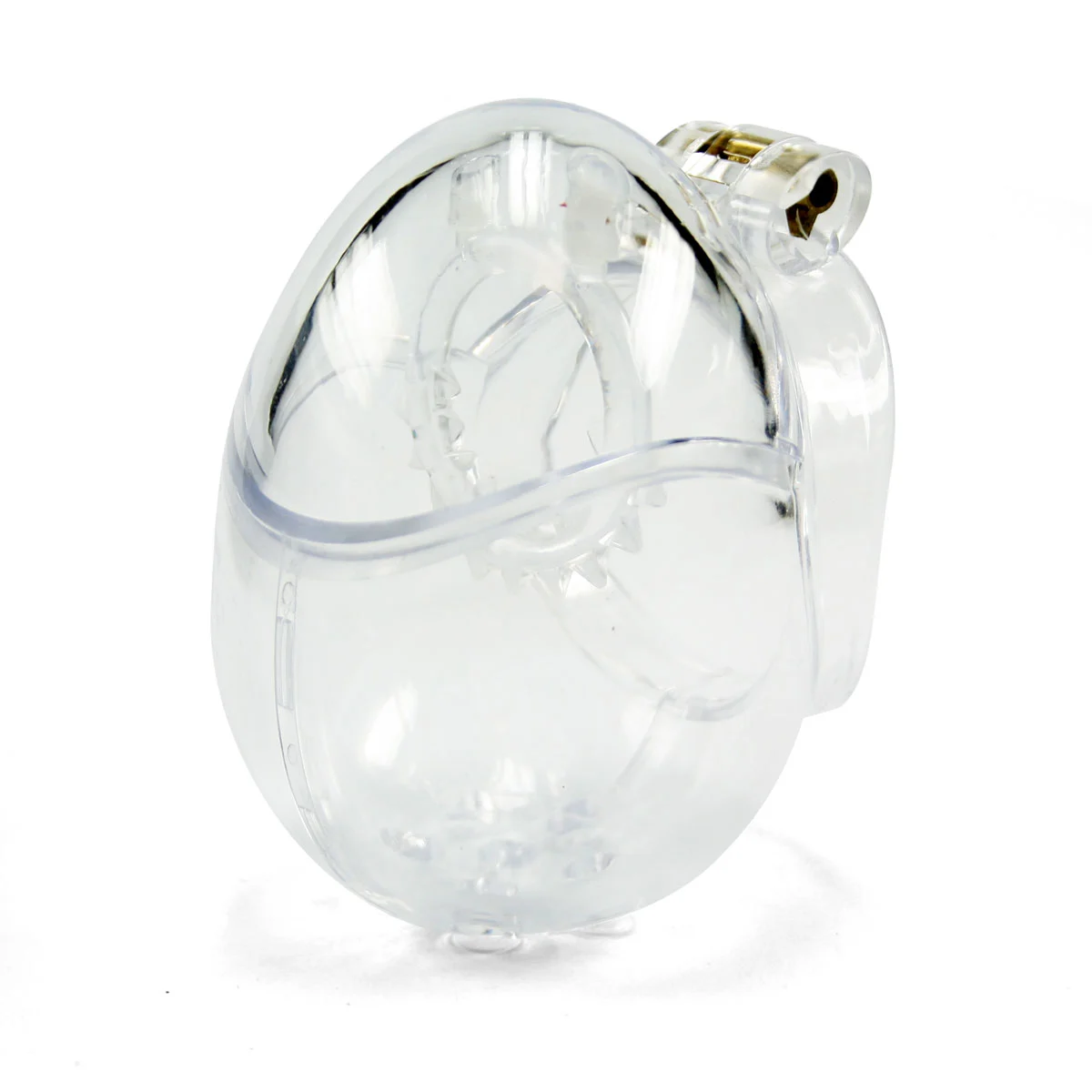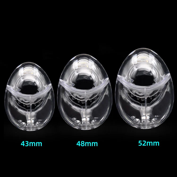 Nieuw Design Egg-model volledig gesloten transparante kuisheidskooi met stevige puntige Penis Ring.