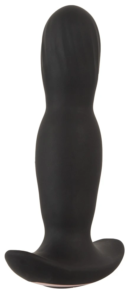 De vibro-buttplug RC opblaasbare stimulator van ANOS voor het vervullen van anale stimulatie heeft een afgeronde, gegroefde punt die kan worden opgeblazen zodat hij groot en uitpuilt. De sterke trillingen zijn voelbaar op het perineum wanneer de plug wordt gedragen.