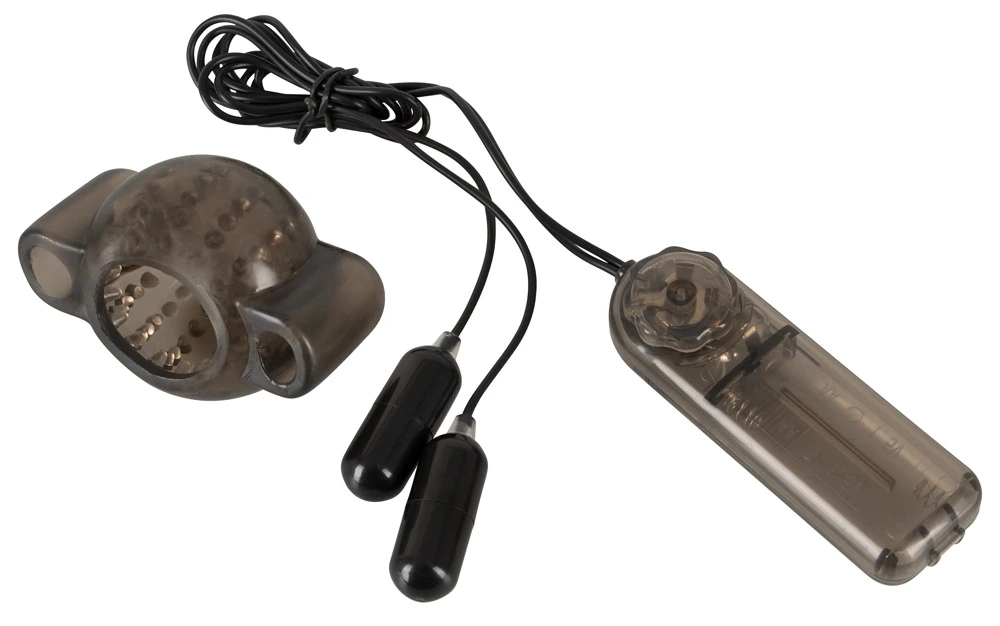 Rekbare sleeve met tal van stimulerende stippen aan de binnenkant die de punt van de penis bevredigen met opwindende vibraties. De trillingen met meerdere snelheden van beide vibro-kogels kunnen eenvoudig worden aangepast door de afstandsbediening op een draad. De vibro-kogels kunnen ook worden verwijderd en ook voor solo-plezier worden gebruikt.