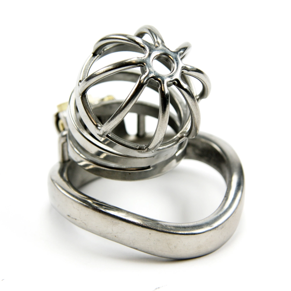 Medium grote roestvrij stalen kuisheidskooi met anatomisch gevormde ring. Deze kooi wordt stevig afgesloten met een handig cylinderslotje; weg met onhandige, rondzwaaiende hangsloten! Nu ook met optionele afneembare catheter!