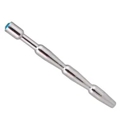 A solid metal penis plug with a sparkling Blue jewel mounted on the base is perfect for anyone who wants to add a touch of glamour and elegance to their urethral / sounding play. The plug is made of heavy duty metal, with a layered style shaft.