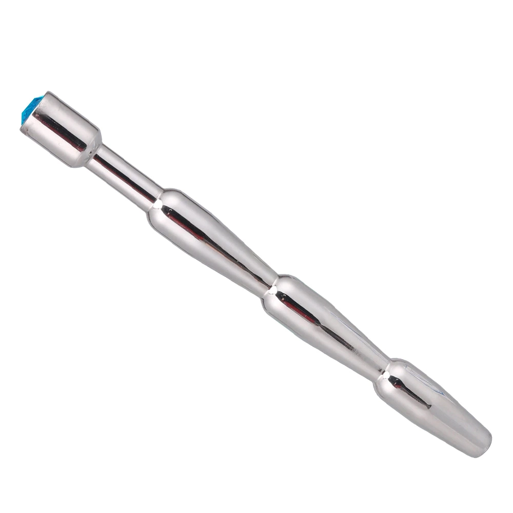 A solid metal penis plug with a sparkling Blue jewel mounted on the base is perfect for anyone who wants to add a touch of glamour and elegance to their urethral / sounding play. The plug is made of heavy duty metal, with a layered style shaft.