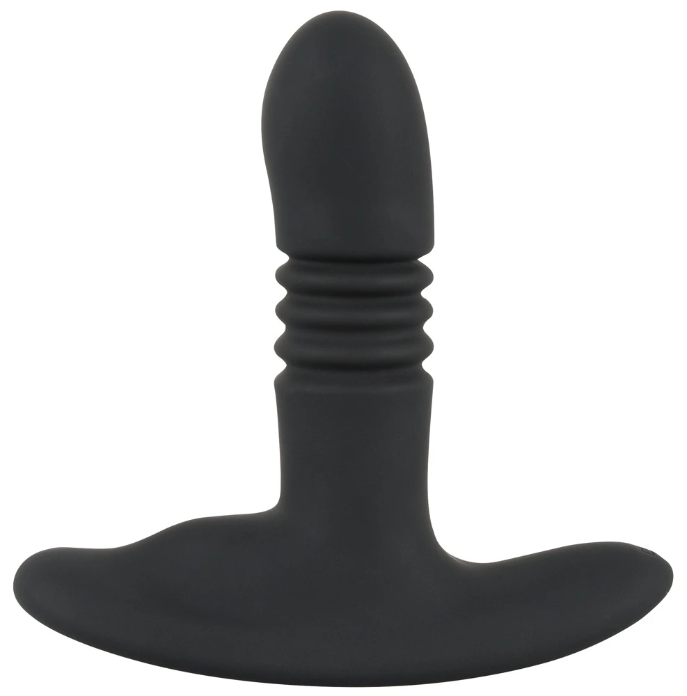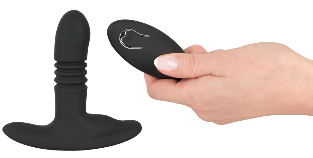 Een vibro-buttplug met stuwkrachtfunctie en perineum stimulatiestaaf. De plug heeft ook een stimulerende textuur. De 12 verschillende vibratie-/stuwkrachtmodi kunnen eenvoudig worden aangepast met de afstandsbediening – een partner kan ook de bediening overnemen voor nog meer plezier! De trillingen zijn bijzonder sterk aan de punt en de basis voor precieze P-spot en anus/perineum stimulatie. De stekker onthoudt de laatste trilstand die is gebruikt voordat hij werd uitgeschakeld, dankzij de slimme geheugenfunctie, en start op deze trilstand wanneer hij weer wordt aangezet. De Thrusting & Vibrating Prostate Plug is waterdicht, wat betekent dat niets spannends in bad of onder de douche in de weg staat. De stuwende, plezierige vibro-plug is ook bedekt met zachte siliconen die heerlijk aanvoelt op de huid en tijdens het dragen. Hij kan worden opgeladen met de meegeleverde USB-kabel. Inclusief hoogwaardige opbergtas. Bestel de batterij voor de afstandsbediening apart: 1 x AAA.